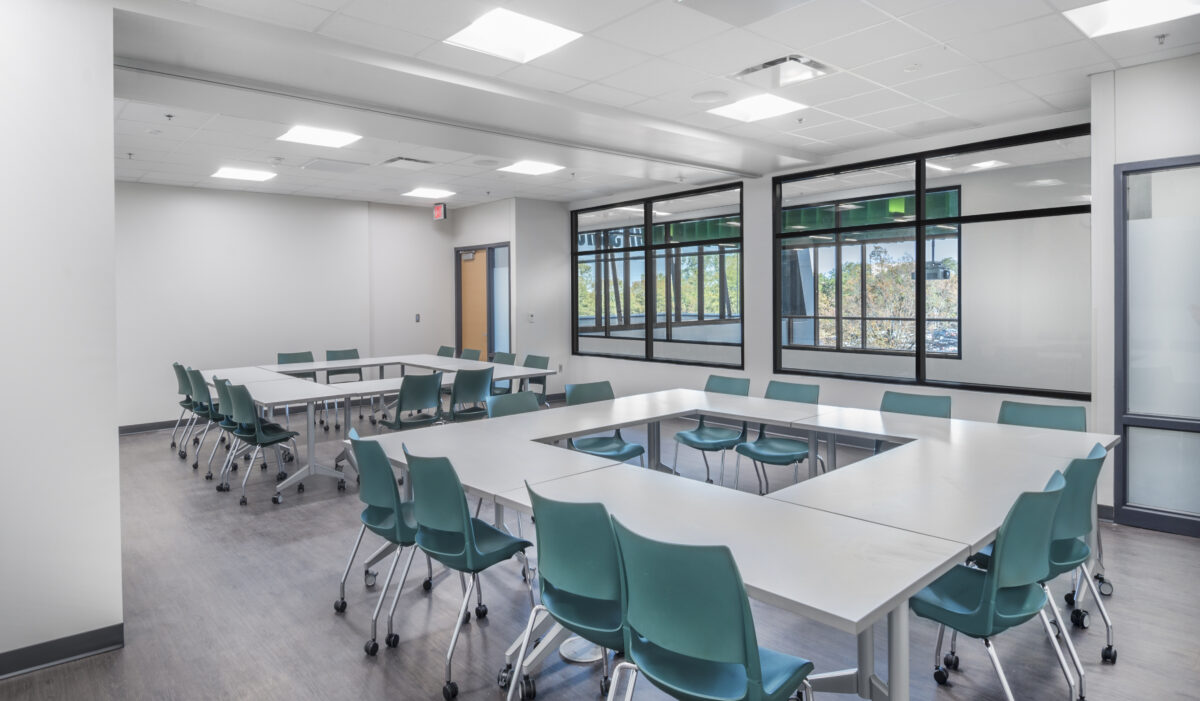 - Additional spaces include a shared break room, conference room, and learning spaces
