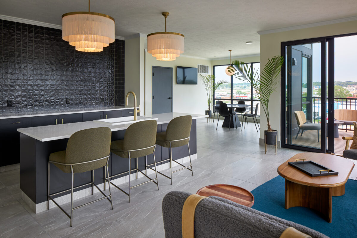 Strategically located between West Dodge Road and Farnam Streets and adjacent to two of Omaha’s largest hospitals, Clove transformed a once-blighted site into a vibrant residential destination. The five-story development features a mix of studio, one-, and two-bedroom apartments, each crafted with high-end finishes and a warm, contemporary aesthetic. The building’s architecture and interior design embody a distinct brand identity, weaving the warm essence of “Clove” to create a relaxing and inviting oasis.