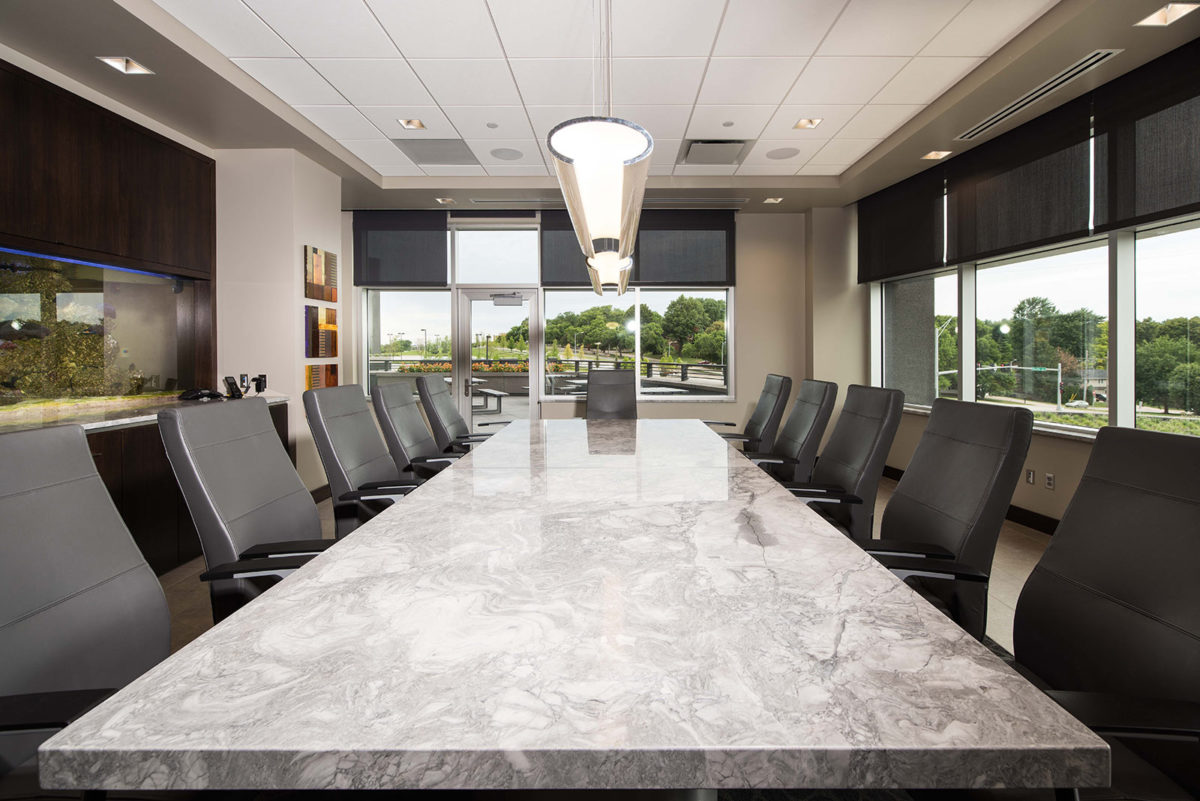This new 115,000 s.f. headquarters building, comprised of four floors, is one of the latest additions to the Sterling Ridge Development. The project includes a community room and branch bank on the first floor with flex space on the second floor. The third floor has open office space, collaboration areas, and meeting spaces. The fourth floor includes a large employee breakroom and an executive area, both with access to outdoor patios. The overall design reflects the client’s values through the clever use of finish materials and graphics.