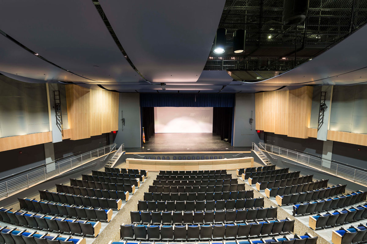 - Due to the 50-foot fly space of the auditorium, HBA designed the building to step up gradually so the height of the new facility was not overwhelming to the existing school building.