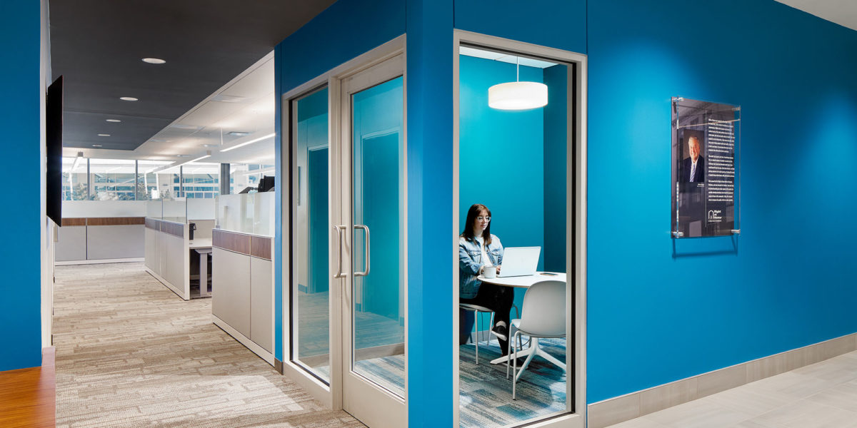 - A mix of large private meeting rooms, medium-sized huddle rooms, and small phone rooms to fit all types of meetings and conversations