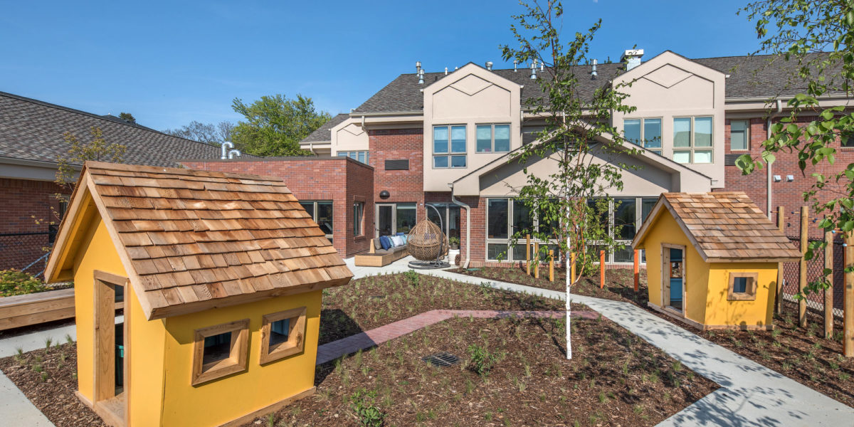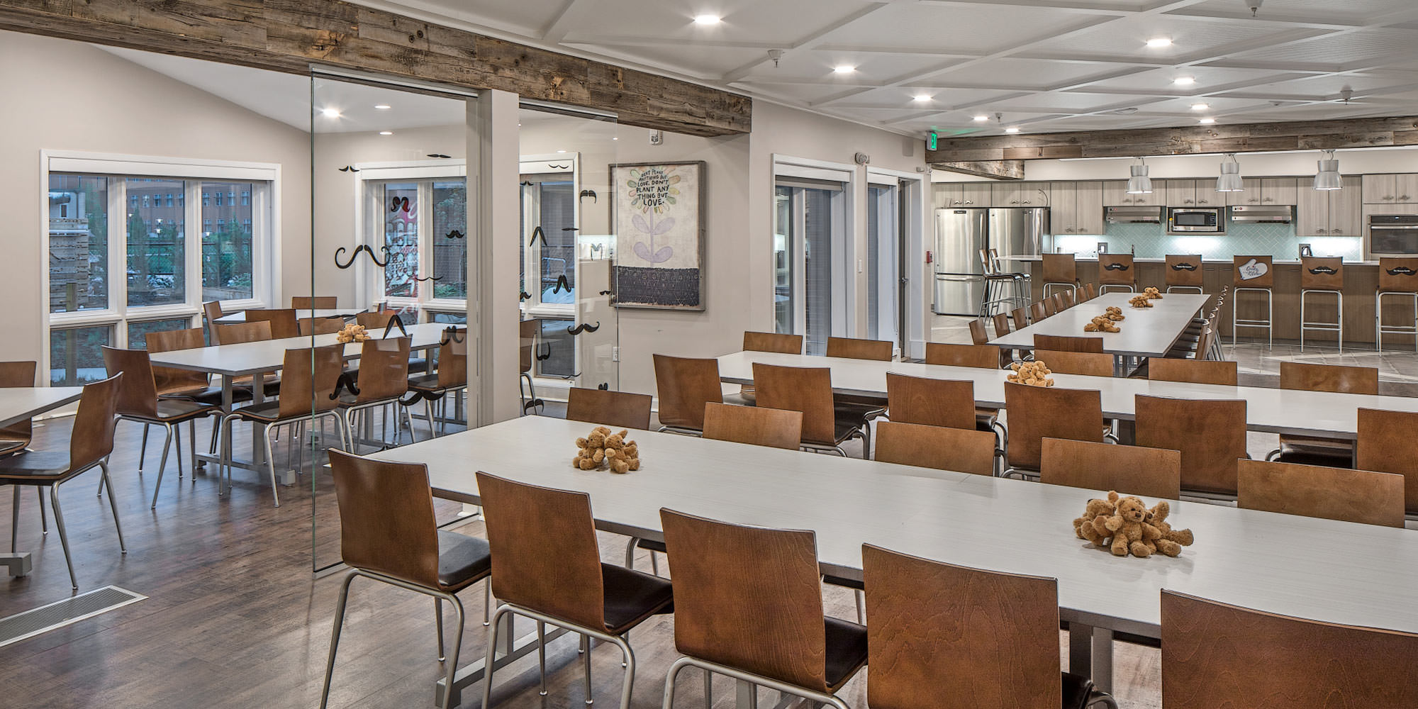 - Shared kitchen, group, and private dining spaces, living and outside areas help families interact and connect