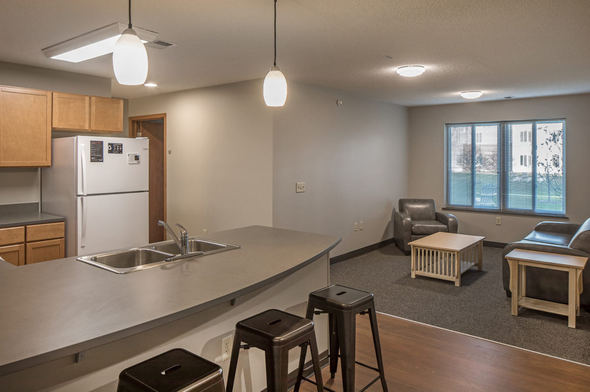 - Several units include private kitchens and community kitchens providing a mixture of traditional and non-traditional student living