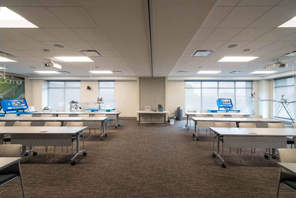 This facility was designed as an addition an existing office building on the Valmont Campus. In response to Valmont’s need for space to adequately train professionals from across the country, HBA provided a highly technological and relevant facility design.